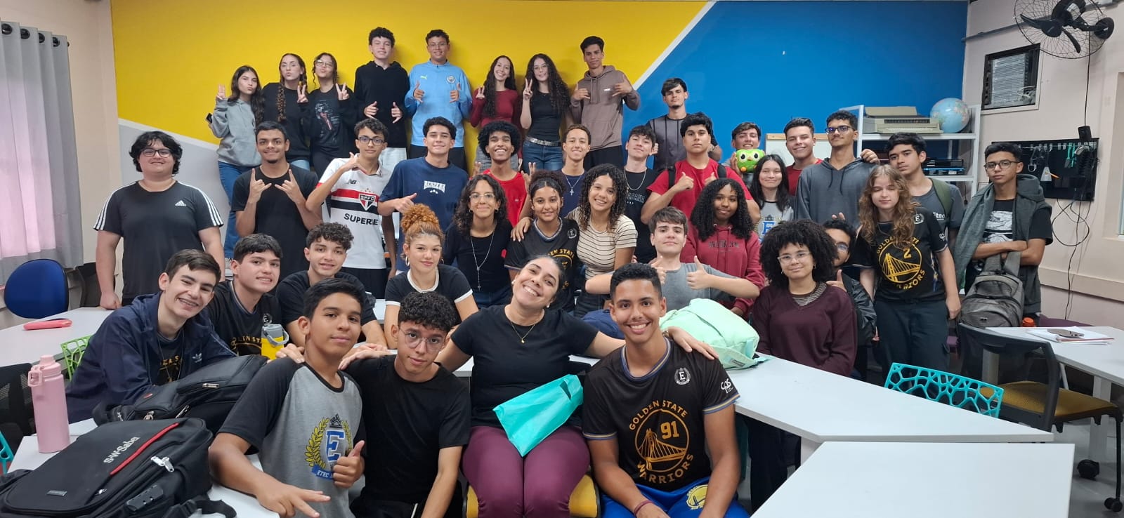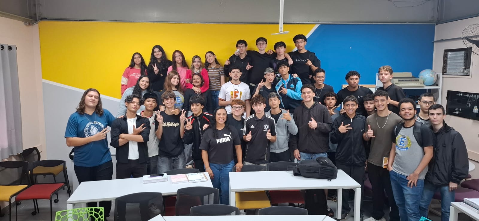A valorização da educação também foi tema da conversa entre a turma do 2º DS-B (Médio Integrado ao Técnico em Desenvolvimento de Sistemas) e a professora e orientadora educacional Amanda Rodrigues. É importante salientar que, segundo o Jornal Diário de São Paulo, em 2023 mais de 25 mil professores foram afastados de suas funções por transtornos mentais. “O que motiva um professor a dar uma boa aula é a valorização dele. Os professores estão sobrecarregados, estão cansados. Isso torna as aulas chatas também, porque o professor tem pouco tempo e muita aula para dar. É preciso olhar para o professor de uma forma diferente, com melhores salários e condições. Emocionalmente o trabalho é desgastante.”