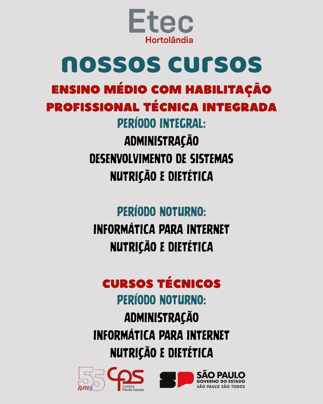 O seu futuro começa aqui! Estão abertas as inscrições para o Vestibulinho da Etec Hortolândia. Garanta sua vaga em uma formação técnica gratuita, de qualidade e com conexão real com o mercado de trabalho. Dê o primeiro passo em direção a uma carreira de sucesso!
